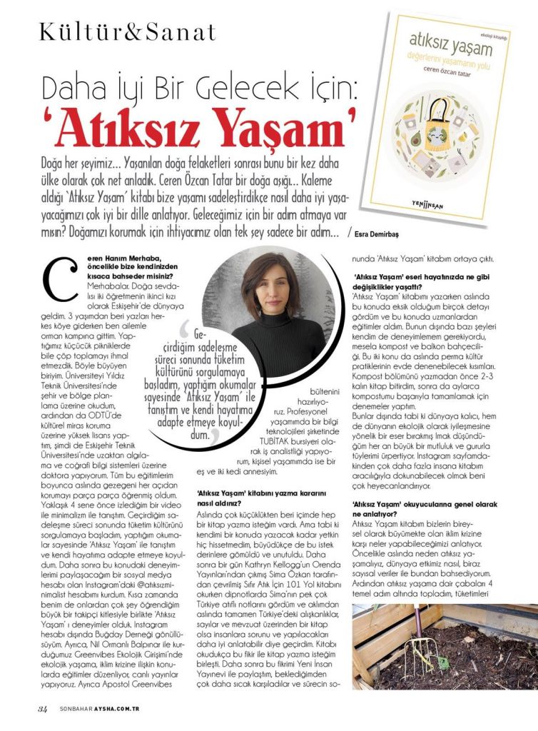 Ekim 2021’de Aysha Dergisi ile atıksız yaşam üzerine bir röportaj gerçekleştirmiştik. İnternet sitelerinde de yer alan röportajı okumak isteyen olursa diye buraya da ekliyorum. Sevgiler!