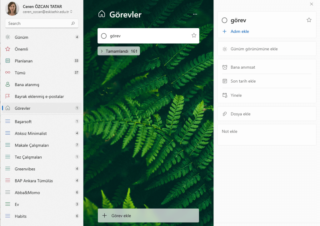 Ben bu kısımda MS Todo’nun detaylarını kullanıyorum.