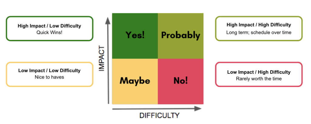 Bir diğer kullanılabilir matris ise etki/zorluk matrisi.